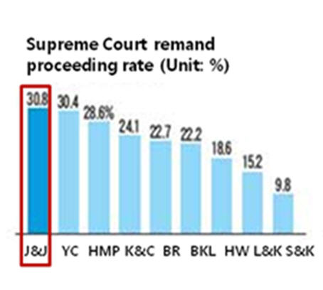1. Jipyong & Jisung, who is in a strategic partnership with HANYANG International Patent & Law Firm, ranked no. 1 in Supreme Court remand proceeding rate in litigation cases.
