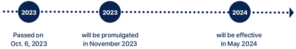 In particular, it is worth noting that the effect of the letter of consent system will be felt much sooner since the system will apply even to the trademark applications that have been filed under the current law yet are still pending. As is customary, the revised law passed in October 2023 is expected to be promulgated approximately one month later in November 2023 and to be effective six months later in May 2024.